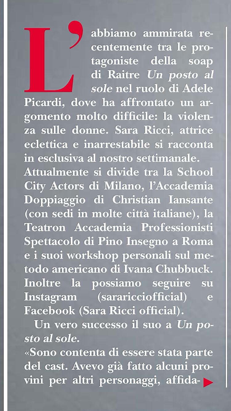 Sara Ricci Intervistata per Novella 2000